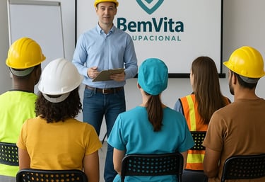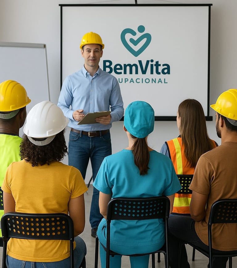 Além dos exames e laudos, a BemVita também realiza treinamentos e palestras para capacitação e prevenção no ambiente de trabalho.